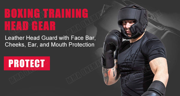 1.Premium leather,the head guard works to cushion blows.